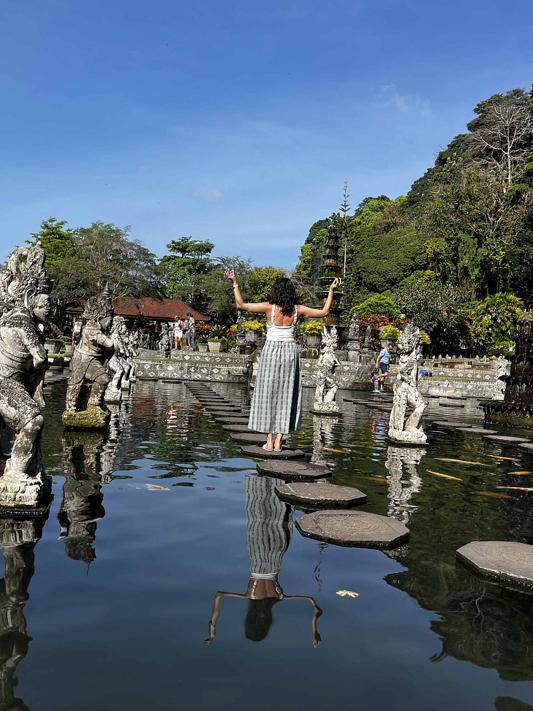 Королевский дворец-сад Тирта Гангга — красивый исторический комплекс с живописными бассейнами, фонтанами и ухоженными садами, расположенный на востоке Бали. Название переводится как «Священная вода Ганги», и парк известен своими лечебными источниками и ритуальными ваннами. Здесь можно прогуляться среди традиционной балийской архитектуры, насладиться спокойствием и фотогеничными видами.